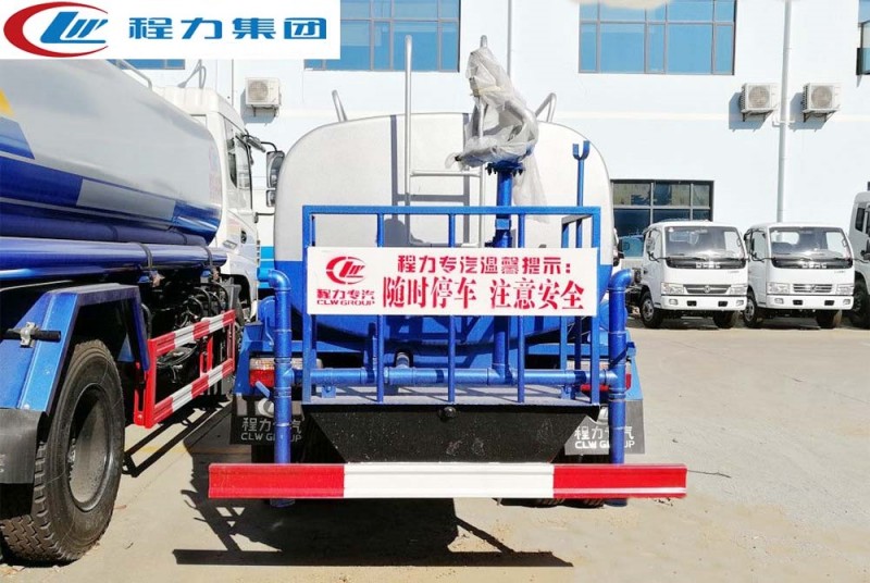 罐體有效容積5立方,罐體采用國標Q235碳鋼,罐體厚度4mm,自吸自排水泵,帶前沖裝置,后灑裝置,左右側噴裝置,尾部帶有安全操作平臺,帶消防接口,自流口,兩根輸水管,尾部綠化高炮,綠化高炮可調節直沖,大雨,中雨,毛毛雨霧,可以連續調節,360度旋轉;
