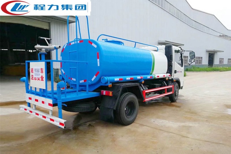 該車型為東風公司最新國五 排放標準。灑水車專用部分由罐體、 水泵、取力器、傳動軸、球閥、噴灑裝置等部件組成。采用國家定型產品,具有性能 穩定、工作可靠、通用適配等特點。灑水車罐體結構為橢圓形或方圓形,采用武鋼優 質碳鋼制作,先進的對焊接工藝,罐體內設防蕩防波隔板,下端有通孔,罐體成型后高 壓氣體試漏檢測,使罐體具有強度高、重心穩、車輛運載安全平穩等特點。