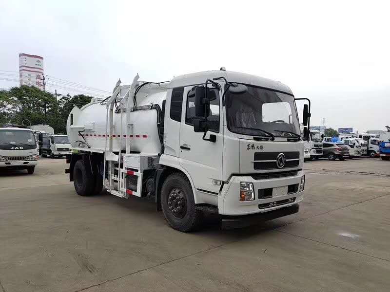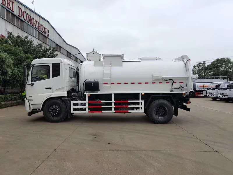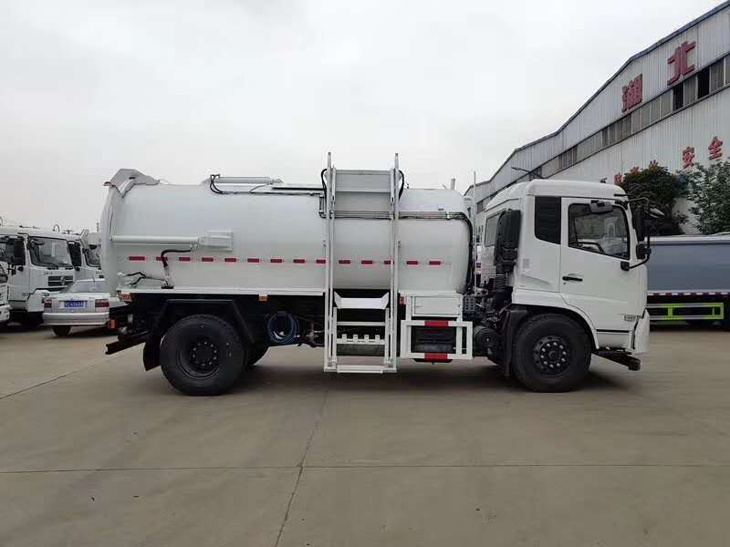 東風天錦餐廚垃圾車,搭配康明斯180馬力國五發(fā)動機,東風六檔箱,9.00R20鋼絲胎,軸距4500mm,原廠空調(diào),正規(guī)東風GB7258-2017新規(guī)底盤;上裝采用Q345高強度錳鋼板或304不銹鋼罐體制作,罐體容積:10立方米,大流量液壓泵,大流量手自一體多路換向閥,可編程PLC電控系統(tǒng)帶無線遙控器操作,污水廂,帶壓縮擠壓功能,帶清洗泵自潔系統(tǒng),后蓋液壓開啟,后蓋帶液壓鎖緊并具有防誤操作。