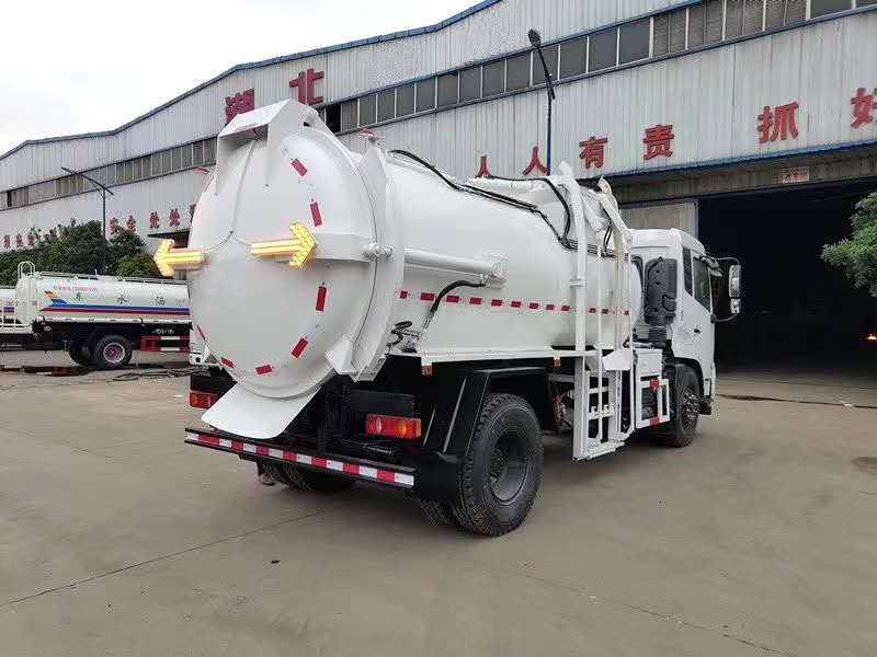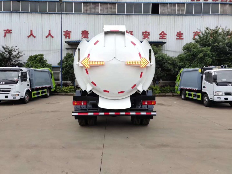 圓形碳鋼罐體,罐體厚度5mm,拉桿提升機帶上蓋聯(lián)動;后蓋液壓開啟;罐體舉升自卸。選裝內(nèi)軒推鏟卸料,帶渣液分離功能。餐廚垃圾車可分罐式和廂式。