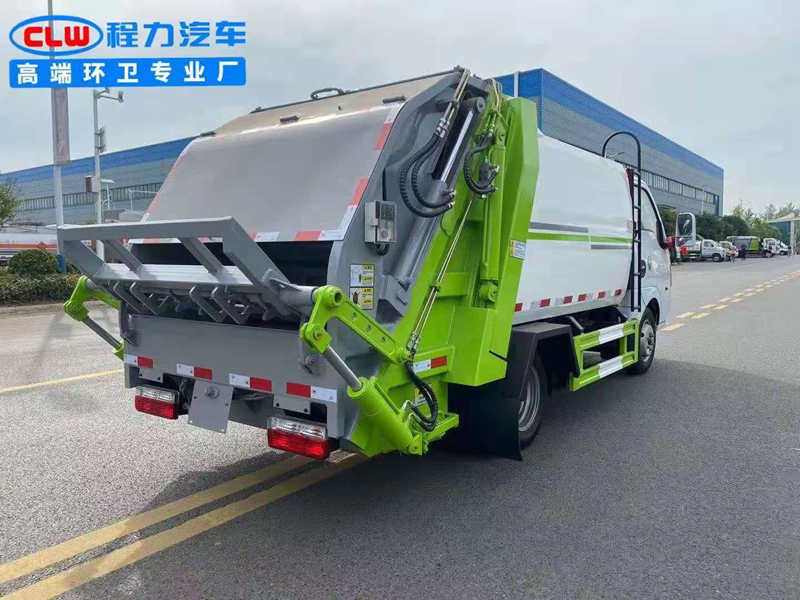裝上?配置:采用Q345錳材鋼?質,弧形箱體,向雙?壓結縮?構,森威?博樂路多?閥,森威?博油樂?缸,英國DLI封密?圈,安徽皖液?油泵,線無?遙控,光感電?應,駕帶?駛室操作,壓縮比1:0.7,可掛120L、240L標垃配?圾桶。