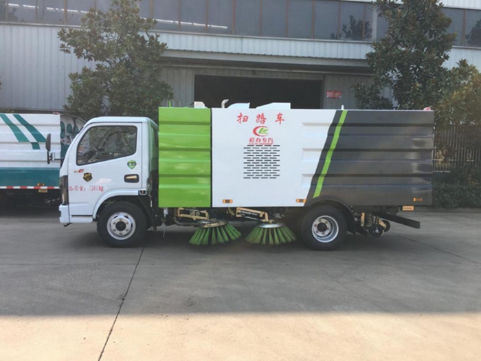???? 該掃路車(chē)采用東風(fēng)多利卡型國(guó)六二類(lèi)底盤(pán)改裝,加裝副發(fā)動(dòng)機(jī)、風(fēng)機(jī)、清水箱、垃圾箱、左右立掃、后置吸盤(pán),掃盤(pán)降塵系統(tǒng),液壓系統(tǒng)、專(zhuān)用裝置電控系統(tǒng)和副車(chē)架等改裝而成。